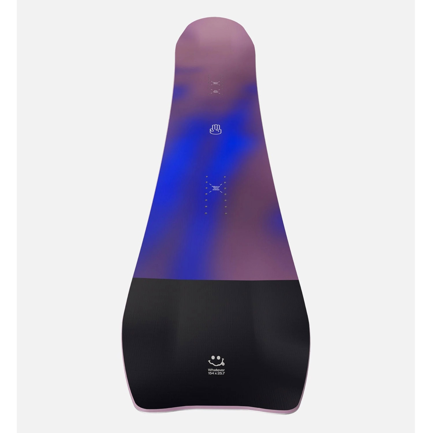 Deska Whatever má sice nepopiratelný directional tvar, její kontaktní plocha se ale chová jako true twin. Získáš tak kombinaci obou tvarů pro skutečnou všestrannost bez kompromisu na výkonu. Toto prkno totiž ctí své jméno a poradí si opravdu s čímkoli. Chceš se vrhnout na překážky v parku? Rozdrtit sjezdovku, nebo se pořádně vyřádit v prašanu? Whatever! To je tvoje odpověď.